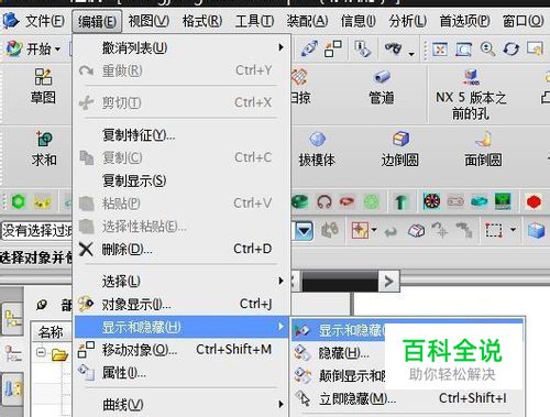 编辑——显示和隐藏——显示和隐藏,确定要转换的对象全部被显示出来。(不需要转换的对象可以选择隐藏,如:草图、基准等)
