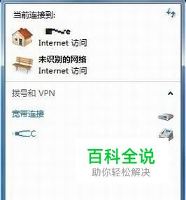 首先,点击桌面右下角网络小图标,显示网络连接窗口,点击其下方的“打开网络和共享中心”,进入网络和共享中心页面。