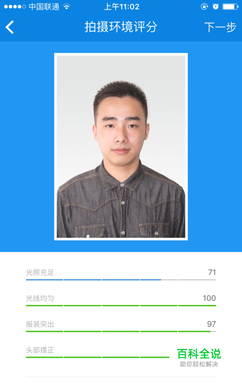 下一步会检测照片的质量,给照片评分,分数高可用进入下一步了。如果低建议重新拍摄