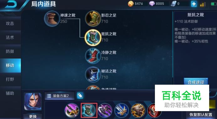 第二件装备我们可以出抵抗之靴,这个装备有很高的法术防御力,我们到达4级后一般可以去中路抓一下对方的法师,因为法师的伤害往往是比较高的,所以我们前期需要出法术防御的鞋子,这样才能抓到人。