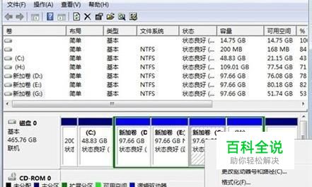 然后我们看到磁盘管理对话框,很强大的Win7新功能。比如我们今天觉得G盘的空间大了点,想要腾出一部分,就在G盘上点击“压缩卷”。