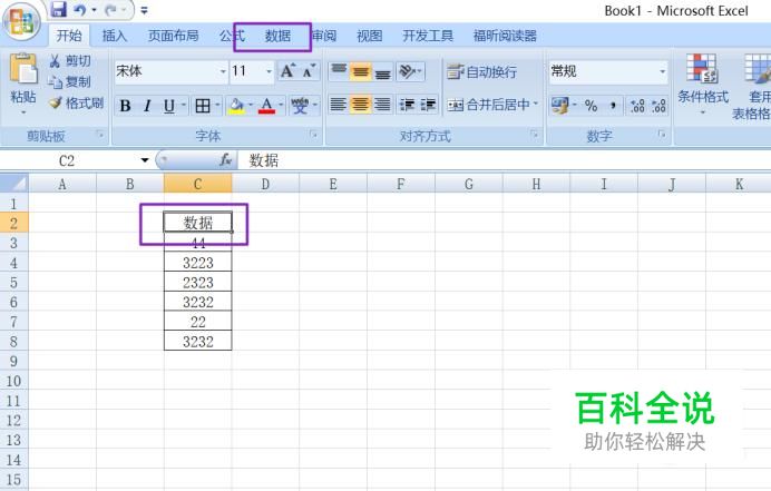 之后我们点击数据那个单元格,然后点击工具栏中的数据;