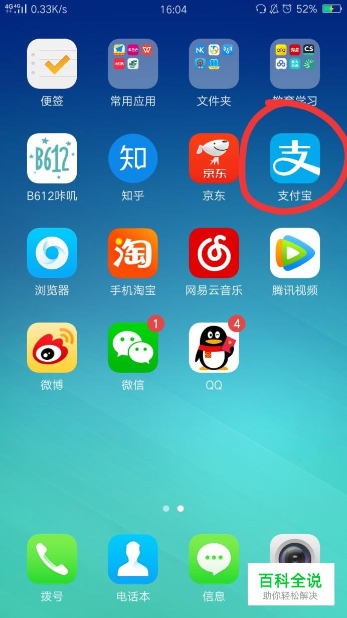 首先我们打开手机,找到支付宝的图标,然后将其点开。