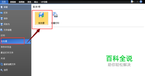 CAD软件打开之后,在软件界面中点击“文件”下的“批处理”按钮。