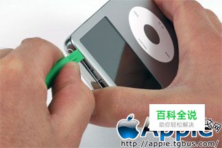 拆解iPod Classic是一项非常具有挑战性的工作,如果你将为此花费很多时间尝试,也请不要气馁,因为最终你还是会成功的。在将塑料材质的iPod专业拆卸工具插入iPod前,要注意拆卸工具插入时的角度。理想的角度应该为与iPod后盖基本垂直位置。 从iPod前后盖的间隙内插入塑料材质的iPod专业拆卸工具。