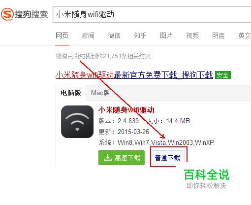 在搜狗搜索引擎中输入关键词“小米随身wifi驱动”