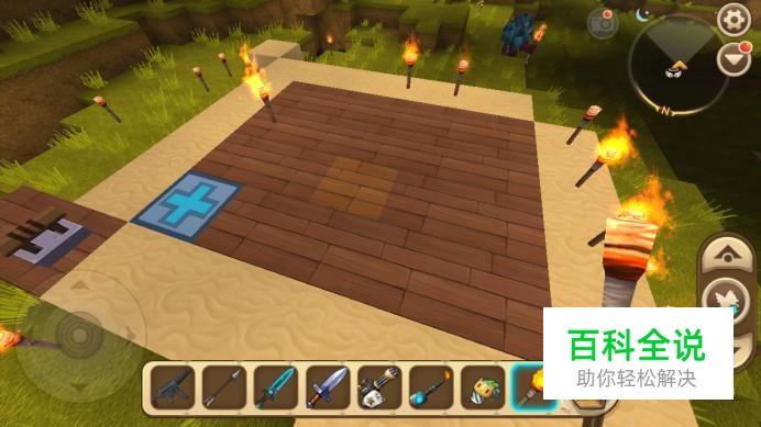 接着我们在地下室的四周和地下铺好地砖,便于我们装饰,然后随便选择一个角落安置升降设施,在工具栏里找到带+号的铁块,并且放置在地下室的上部,找到带-号的铁块放在地下室的下部。