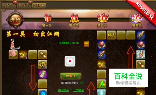 江湖奇遇一共有4关,每一关的奖励都不一样。当你打开游戏界面,就会知道,这其实是一个投掷骰子的休闲玩法!玩家一天可以有15次的免费机会,可以消耗元宝和绑元来增加次数,骰子的点数决定了千金的步数,玩家会在落脚点触发事件,到达每一大关重点都会获得通关奖励。 当然,越往后奖励越好,玩家到达第四大关的终点后,将不能投掷骰子前进。每晚00:00将重置关卡,重置后玩家将会回到第一关的起点处。第一关的奖励是20点魂石一个,第二关的奖励是武勋防具碎片一个,第三关的奖励是武勋首饰碎片一个,第四个是武勋武器碎片一个。