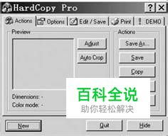 图1就是HardCopy启动后的界面,在窗口中有“Action”(操作)、“Option”(选项)、“Edit/Save”(编辑/保存)、“Print”(打印)4个主要的标签。“Option”标签是最常用的标签,需要说明的是,在“Option”标签下有一个“Preview”(预览)区域,靠右边有两个命令按钮:[Adjust](调整)和[Auto crop](自动剪裁)。