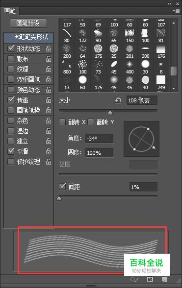 调整笔刷角度,可以看到笔刷变成了一条线