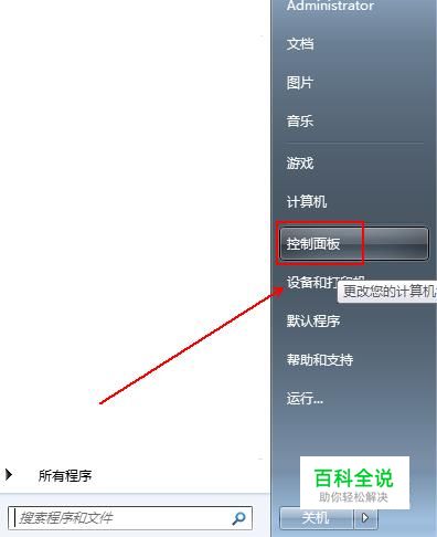 在电脑桌面上点击win图标,在弹出的菜单列表中单击“控制面板”选项。
