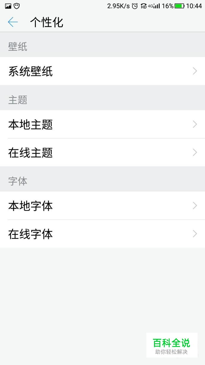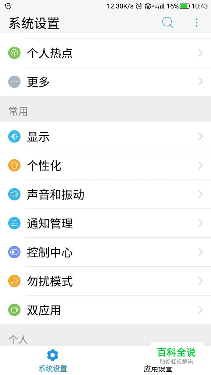 首先我们找到手机设置选项,找到个性化选项进入。