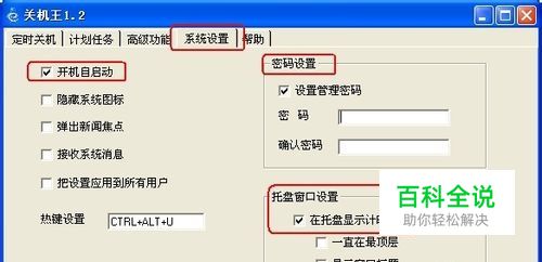 进行系统设置:设置开机自启动,密码设置,在托盘显示计时窗口。