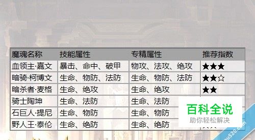 《王者之剑》的新职业游侠已经和大家见面了,不知道大家对这个充满了野性美的妹子感觉如何?小编也去尝试了一下,发现游侠这个职业在输出方面还是非常给力的。一个精心挑选的魔魂可以迅速提升角色的输出能力。那么那一个魔魂最适合游侠呢?今天,小编就为“新游侠”们整理了不同阶段可以使用的魔魂,一起来看看吧! 一、45—60级推荐魔魂:血领主嘉文 在这一阶段适合招募的boss类魔魂中,只有嘉文和柯博文是三属性专精的魔魂,所以这两个魔魂肯定是推荐度最高的。嘉文的专精属性更偏向于进攻,而柯博文的专精属性更偏向于防御。结合游侠的职业和技能特性,小编还是觉得嘉文更适合游侠。 二、61—70级推荐魔魂:巨锤·安东尼 更多信息请查阅参考资料!