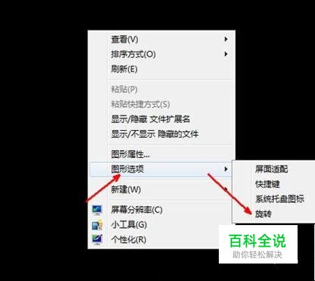 在电脑屏幕上右击鼠标。这时会发现有一个图形旋转的选项,点击旋转就行了。