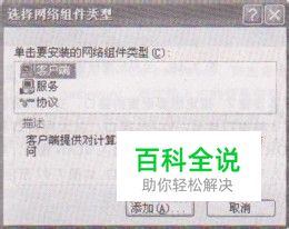 步骤2:在图1所示的对话框中选择【协议】选项,单击【添加】按钮,弹出【选择网络 协议】对话框,如图2所示。