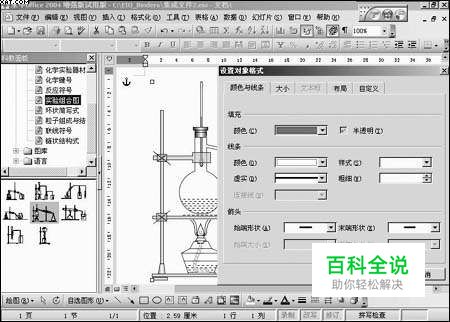 三、如果素材库里的素材不适合我的应用怎么办 要知道,这些素材具有很强的可变性。比如在化学类素材中,如果有实验容器的液体液面高度不符合需要时,我们可以重新设计。具体操作为:单击鼠标右键,在弹出的菜单中选择“格式化对象”命令,接着出现“设置对象格式”对话框(如图3),切换至“自定义”标签进行自定义设置即可。图3 “设置对象格式”对话框 同样方法,我们还可以根据需要对化学类素材中的所有导管进行内径设置。 有了这么大的一个素材库,老师们就不用再拿着教科书为了扫描图片而跑来跑去了。掌握了永中Office 2004科教编辑器,老师们更可以轻松编写出精彩的教案!
