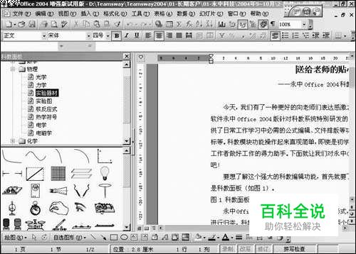 当我们进入永中Office 2004后,选择“视图”菜单下面的“科教面板”或者“插入”菜单下面的“科教编辑器”,就可以很便捷地打开它。