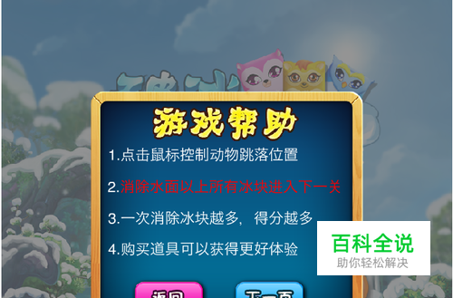 3个同种颜色的动物相连就可以消除周围的冰块,消除所有水面以上的冰块就可以进入下一关。随着关卡递增,难度也会递增哦。不一样的玩法,不一样的挑战,赶紧邀请好友一起来破冰吧!移动鼠标确认下落方位,点击鼠标左键确认落下。注意使三个相同的物体相连就能消除和破冰哦!规定时间内,通过一定的规则震破更多的冰获得更高的分数。