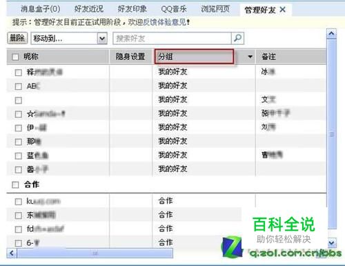 好友也能批处理 错删之后可还原 步骤: 使用WebQQ进行好友管理,最大的一个好处是可以“批处理”。比如我们想将几位好友都移动到某个自定义分组中,就可以这样操作。 第一步:选中这几位好友昵称前面的复选框,然后点击“移动到”后面的“小三角”,在下拉菜单中选择某个分组,这时会弹出一个“移动好友分组”对话框,如图04所示,刚才被选择的几位好友的昵称会出现在该对话框中,如果你发现并不想对某位好友进行移动,可以点击该好友昵称后面的“取消”按钮,放弃移动;如果你确认这些好友都是你想要移动的好友,那么就点击“确定”按钮,WebQQ就会帮助你将这些好友都移动到新的分组中。 图04 使用WebQQ批量移动好友 第二步:使用WebQQ还可以批量的删除好友,如图05所示。其使用方法与“批量移动好友”类似,值得一提的是,经过“批量删除”的好友,都被放到了“回收站”中,此后你还可以通过“回收站”对删除的好友进行“还原”和“彻底删除”操作。 图05 对选中的好友进行批量删除 第三步:下面我们看看如何对错删的好友进行批量还原。如图06所示,点击一下右上角的“回收站”按钮,我们看到刚才被删除的好友昵称都出现在了回收站中。首先选择你准备还原的好友,然后点击“还原”按钮,这时会弹出一个“ 还原好友”的对话框,如图06所示,在“还原到分组”后面的下拉菜单中选择一个分组,然后点击“确定”按钮,这几位好友就会被还原到你选择的分组当中了。 图06 对选中的好友进行批量还原 如图07所示,我们还可以对好友进行批量彻底删除。不过笔者劝大家使用该功能的时候一定要谨慎哦,因为这是“彻底删除”,不可还原哦。 图07 批量彻底删除好友 好友搜索很快速 修改备注更简单 步骤: 虽然我们上面说了WebQQ具有多种排序方式,还可以按照不同的分组进行排序。但是有的时候我们可能忘记了某位好友所在的分组,这时候该怎样快速的找到好友呢?回答是采用“搜索”。比如笔者只记得某位好友姓张(连名字都记不清了),这时只要在搜索框中输入汉字“张”,WebQQ就会将 “昵称”或者“备注”中带“张”字的好友都列出来,如图08所示。(如果你此时点击一下“回车”键,你会发现当前好友昵称前面的复选框变为了选中状态) 图08 快速搜索好友 使用WebQQ对好友进行备注也很简单,如图09所示,只要点击一下好友备注栏,在弹出的对话框中直接输入文字就可以了。 图09 对好友进行备注 如果你还在使用传统的方法对QQ好友进行逐一的管理,那么你真的“Out”了,赶紧来体验一下WebQQ批量管理好友的魅力吧!最后笔者还要告诉大家一个好消息,WebQQ V1.1不仅推出了方便好友的管理好友功能,还对文件传输功能进行了优化,最大可支持上传10M大小的文件哦!