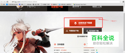 进入dnf官网下载页面,下载全新高速下载器,见下图。。。
