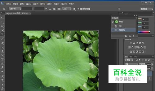 对选区进行颜色填充,填充绿色。然后取消选区,按住ctrl+D快捷键。