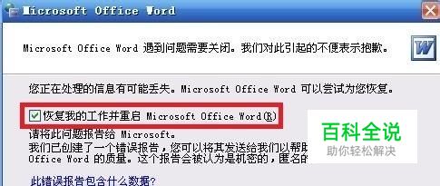 在提示打开程序错误的对话框上勾选 恢复我的工作并重启 Microsoft Office Word ,然后点击 不发送 。在 是否以 安全模式 启动word 的提示框上点击 是 :