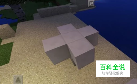 我们先搭建一个底部为一,上面为十字的台子,材料可以用圆石或者石英石都可以,只要导电。