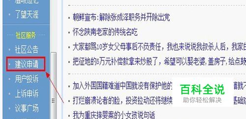 登录账号后,我们在论坛左边的菜单中,一直往下拉,直到底部,点击【建议申请】。