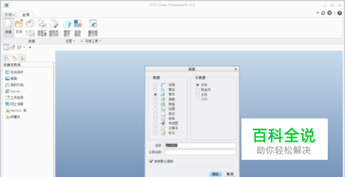 在Creo软件的创建窗口中新建一个零件;