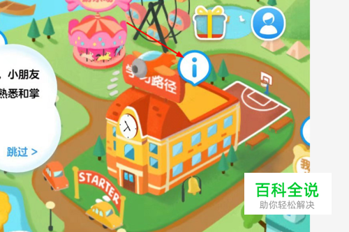打开手机桌面ABCmouse软件,进入首页,显示学习的途径和方法,点击有感叹号的图标,会显示里面的学习内容,如图所示