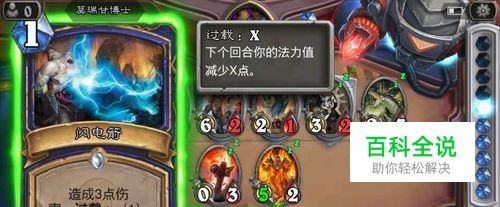 炉石空降突袭通关第五步:打出手牌闪电箭,消灭掉已方的“火舌图腾”,触发所有随从1点伤害。