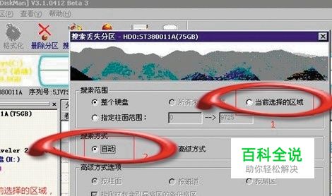 第二步:打开DiskGenius软件,然后选择“搜索分区”,搜索范围选择“整个硬盘”,搜索方式选择“自动”即可。