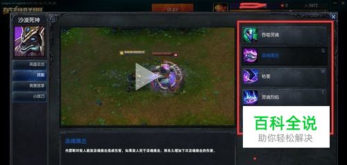 2、技能介绍 吞噬灵魂 他的技能分别有5个,第一个是被动技能,就是自动施法的,主要就是靠直砍而达到吸血效果。