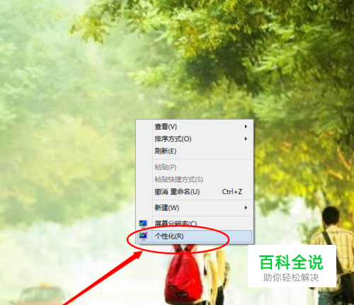我们在空白处右击一下,就会弹出快捷菜单列表,接着点击一下“个性化”,看如下图所示。