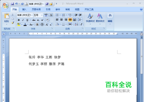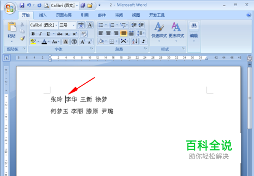 首先,将光标放在第一行第二个名字前(如图);