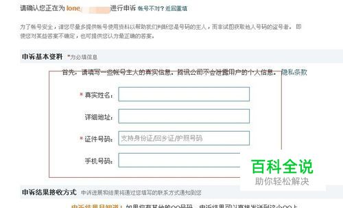 然后开始填写申诉资料,申诉基本资料可以随意填写,接收结果的QQ号码要填写自己的,接收邮件信息用,然后按照步骤填写资料即可。