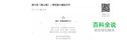 【打开音频所在的页面】在Chrome浏览器中打开音乐所在的页面。我们这里以厦门大学推送的厦大版《南山南》为例。原文链接:http://mp.weixin.qq.com/s?__biz=MzA3OTM1MTIzNQ==&mid=402502644&idx=1&sn=5f4b168dcb12ca8e6eb04fdb5ee4f7e4&scene=1&srcid=1229jqos61jwfKEBydw8Is6P&from=singlemessage&isappinstalled=0