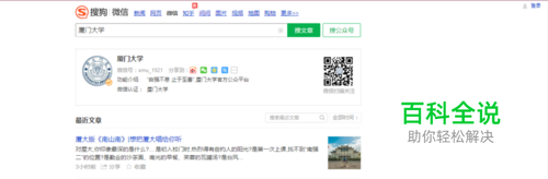 可能有人会问,“怎么在电脑上打开微信文章?”很多种方法,比如可以去搜狗选择微信搜索,搜索公共号“厦门大学”或者搜索文章标题。如下图。