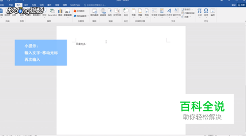 打开Word。首先输入文字。然后移动光标。再次输入文字。