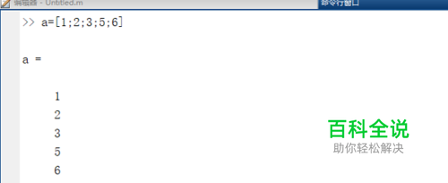 第一步在matlab中可以直接定义列向量,如a=[1;2;3;5;6],如下图所示: