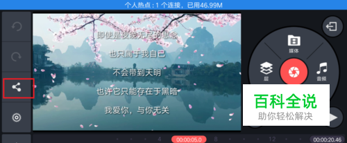 在巧影中,制作好视频之后,点击屏幕左侧的分享按钮,如图所示。