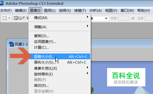 点击Photoshop【图像】菜单中的【图像大小】。