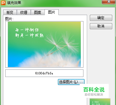 点击图片,进入图片填充效果窗口,点击选择图片,弹出选择图片窗口,如下图所示。
