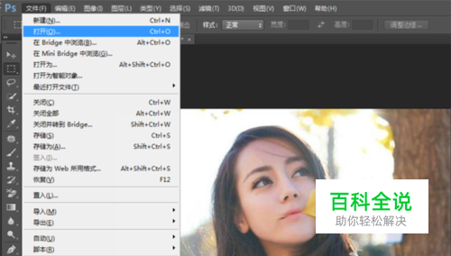 同时按ctrl+O键打开图片素材,也可以直接将图片拖动到PS中;