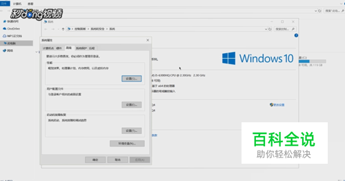 首先右击“我的电脑”,点击属性,在出现的显像卡中,选择“高级”,“性能”,“设置”。