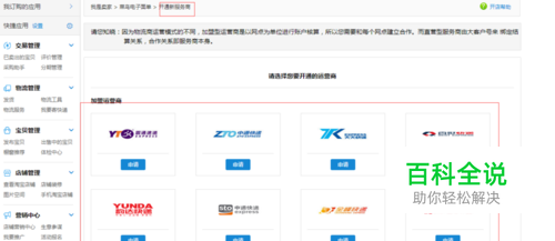 在打印电子面单之前要先设置好菜鸟。进入淘宝后台,如图所示:按步骤操作。