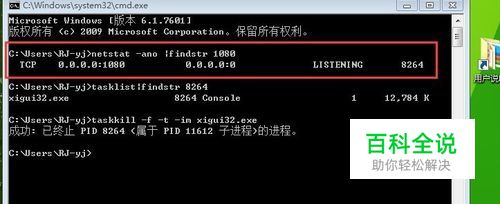 win7命令行 端口占用 查询进程号 杀进程