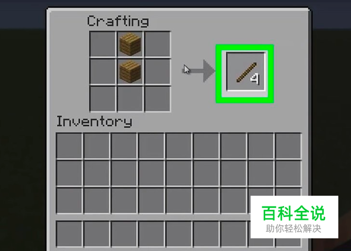 找七个木棍: 砍树,得到木块。 木块放在制造台中,得到木板。 木板放在另一个的木板上,做出4个木棍。 再重复一次,再得到4个木棍。 用其中的7个木棍来做阶梯。