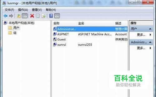 在左边选择“用户”,再右键单击右边的“Administrator”帐号,选择弹出菜单中的“设置密码”命令,如上图;